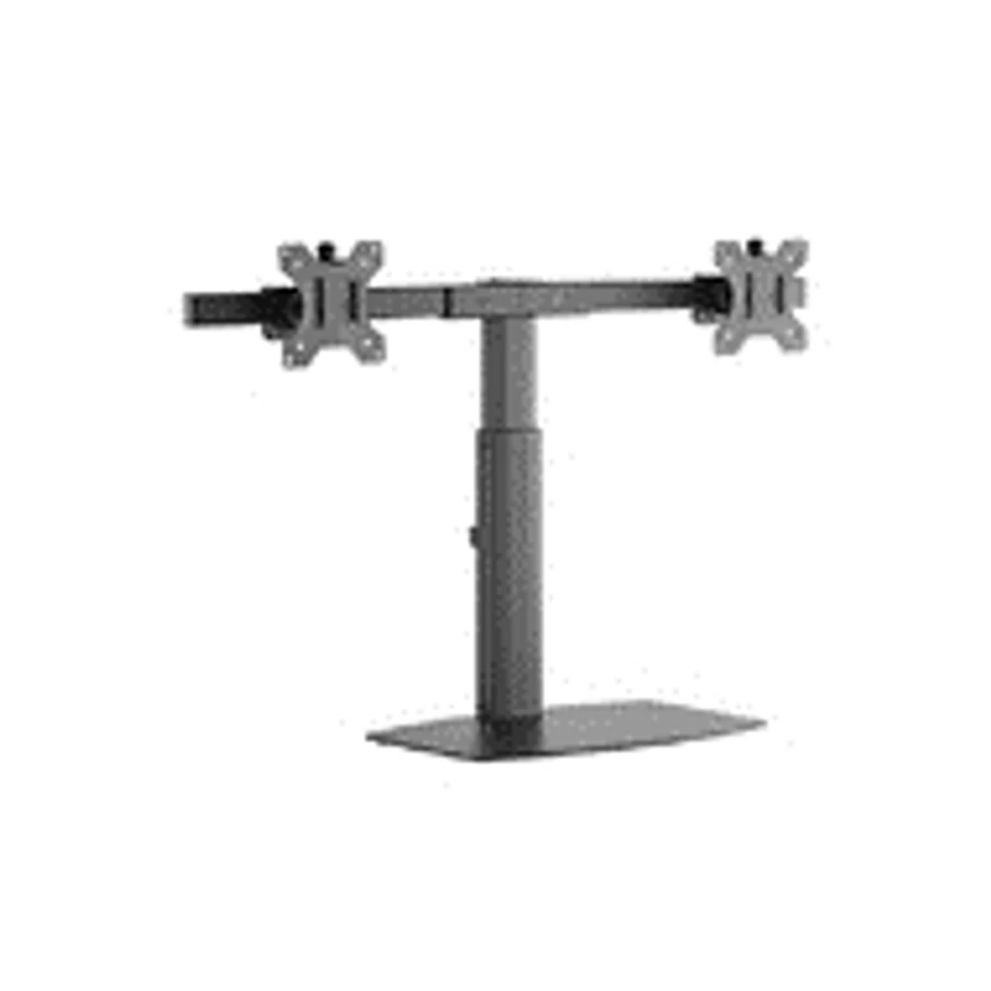 Rainbow2 képernyő fogadására alkalmas gázrugós asztali konzol, VESA100/75 - talpméret: 28x22cm - oszlop magassága: 35-46cm - billenthetőség: ± 20°, forgathatóság: ± 10° - képernyőméret: 17-27” képátló - teherbírás: max. 6kg monitoronként